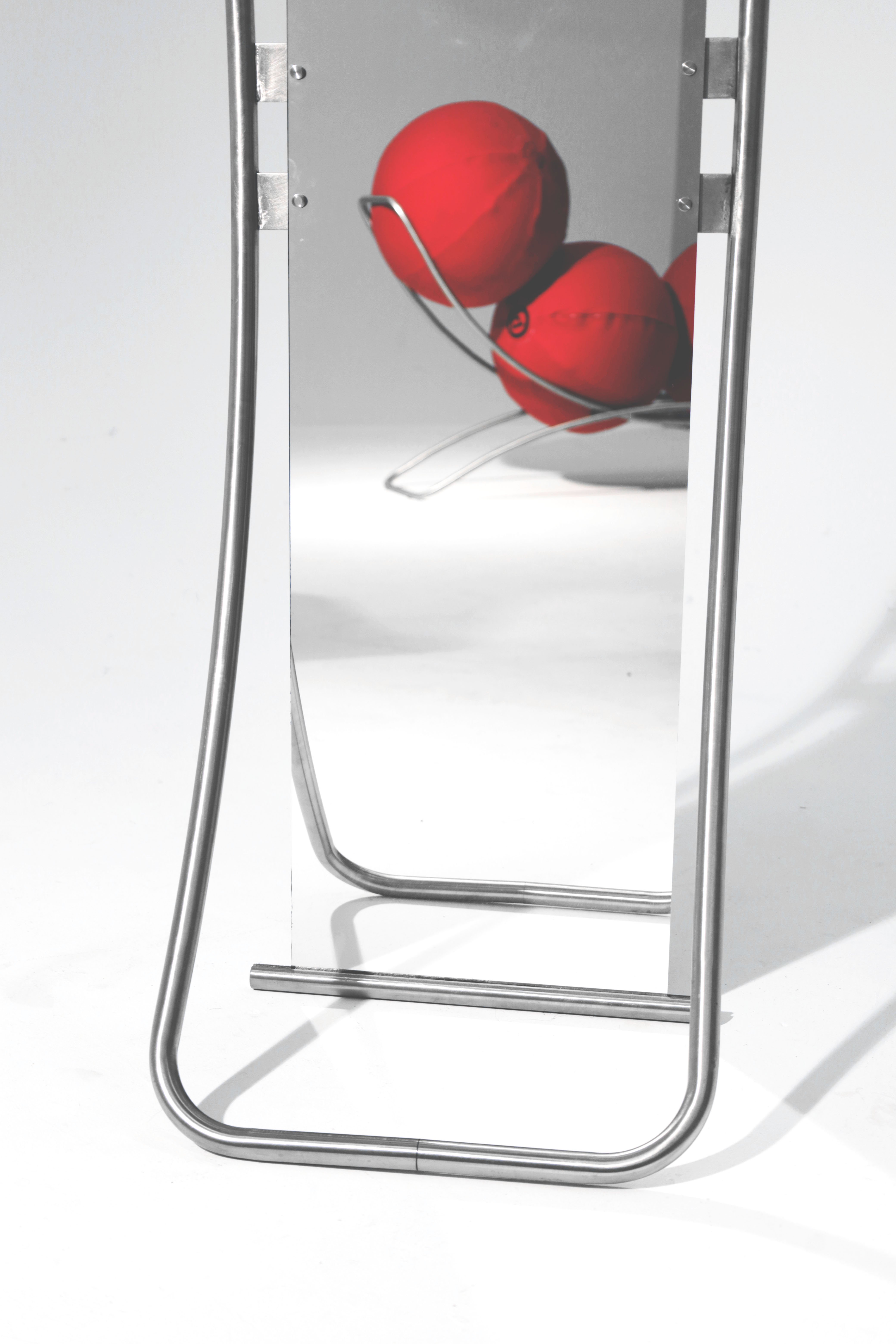 STAINLESS STEEL TUBES, ROD, AND FLAT BAR. MIRRORED GLASS PANE. STAINLESS GLASS BOLTS.