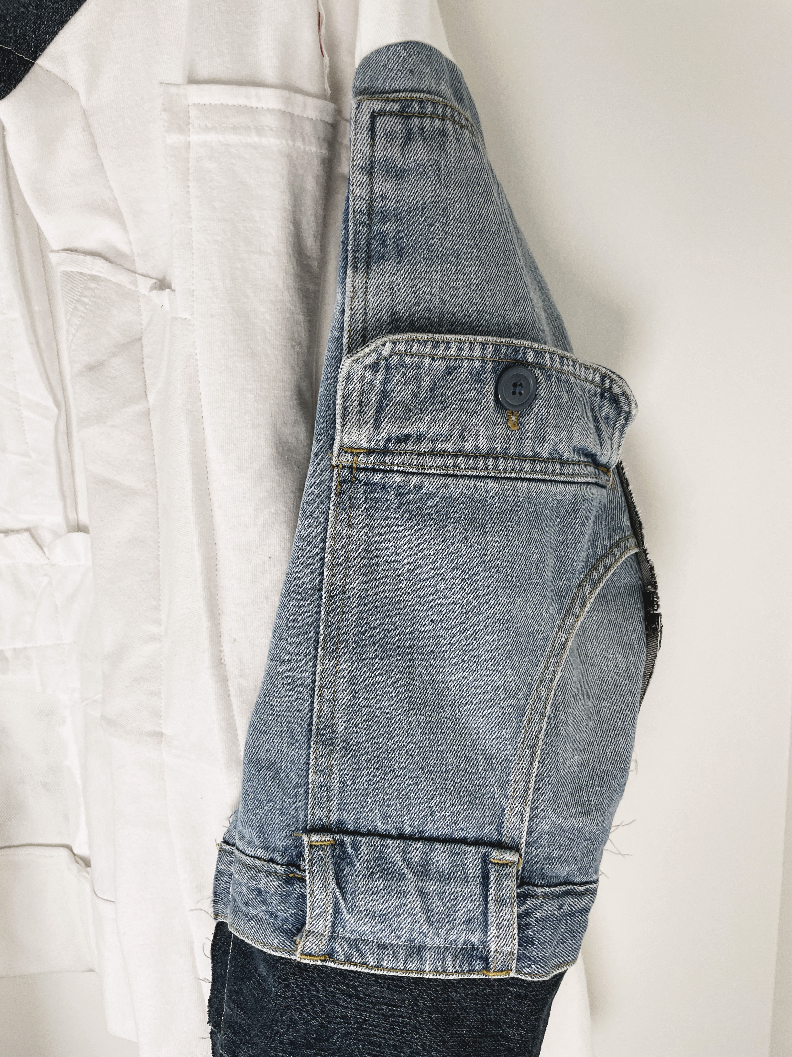 jacket was to construct it out of recycled clothing parts from previously discarded garments.